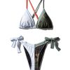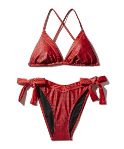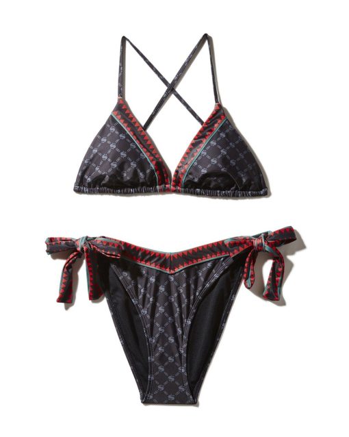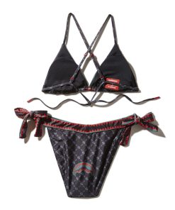 Features:Vertical Sharkmouth printed contrast bandSelf spaghetti straps for tiesAdjustable straps at backsideConvertible straps at backside for criss cross or straight displayRemovable bra cups