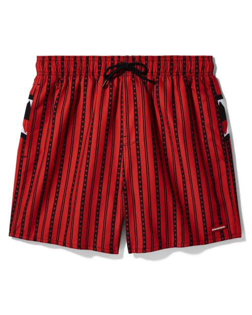 Details:4 way stretch fabric swimsuitSide pocketsBranded elastic waistbandInner perforated fabric for comfort and supportBack pocket with flap