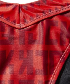 MATERIAL COMPOSITION:83% polyester 17% elastaneFeatures:Vertical Sharkmouth printed contrast bandSelf spaghetti straps for tiesAdjustable straps at backsideConvertible straps at backside for criss cross or straight displayRemovable bra cups