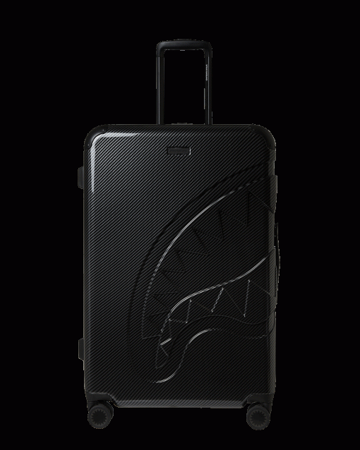 Faux carbon fiber full size luggage. Features an embossed shark mouth.