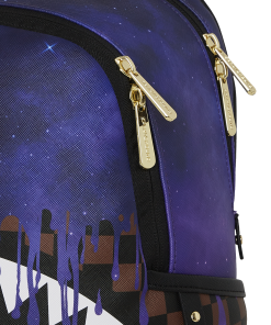 Dimensions: 10″ x 5″ x 11.5″ • Two large main zippered compartments • Side pockets • Zippered Stash pocket • Adjustable straps for custom sizing • Gold zippers with metal hardware