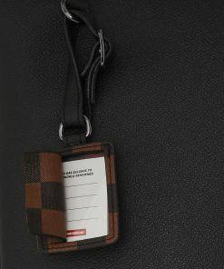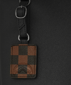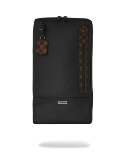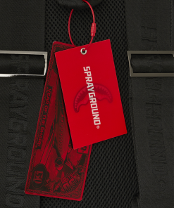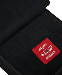 PVC bag with embossed details such as the sharkmouth, zipper pullers, and ID tag. Sewn faux leather details around the front zipper pocket and ID tag.