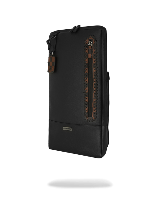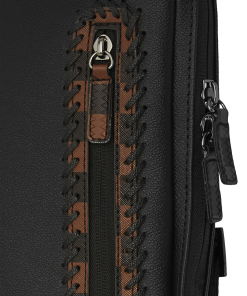 Ergonomic mesh back padding, Whip stitch detailing, adjustable straps, 2 exterior pockets, features a whip stitch luggage tag, embossed zipper pulls
