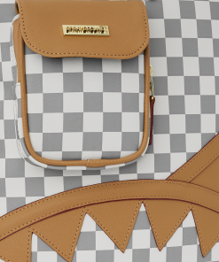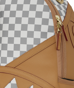 Dimensions: 18″ x 6″ x 11.5″ • Front zipper pocket • Side pockets • Zippered Stash pocket • Separate velour sunglass compartment • Ergonomic mesh back padding • Adjustable Straps for custom sizing • Gold zippers with metal hardware • Metal “Sprayground Authentic” badge • Slide through back sleeve connects to carry-on luggage to free your hands
