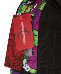 Dimensions: 18″ x 6″ x 11.5″ • Front zipper pocket • Side pockets • Zippered Stash pocket • Separate velour sunglass compartment • Ergonomic mesh back padding • Adjustable Straps for custom sizing • Gold zippers with metal hardware • Metal “Sprayground Authentic” badge • Slide through back sleeve connects to carry-on luggage to free your hands