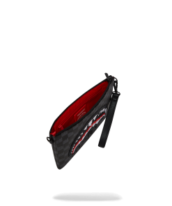 Pouch with removable wristlet strap, Handle on front panel, Zip Closure1 interior pocket7″ X 10″ X 0.25″